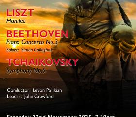 The first concert of our 2025-2026 season opens in a dramatic way with Franz Liszt's dark and brooding symphonic poem depicting Shakespeare's powerful tragedy Hamlet. We’re delighted to be joined by Simon Callaghan, one of the UK’s most prominent pianists, as our soloist for Beethoven’s perennially popular Piano Concerto No. 3. The second half of the concert features another firm favourite, Tchaikovsky’s Symphony No. 5, a work full of rich harmonies and thoroughly good tunes.